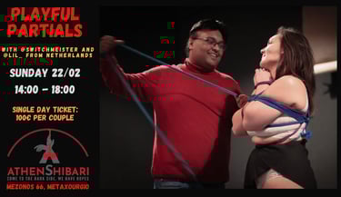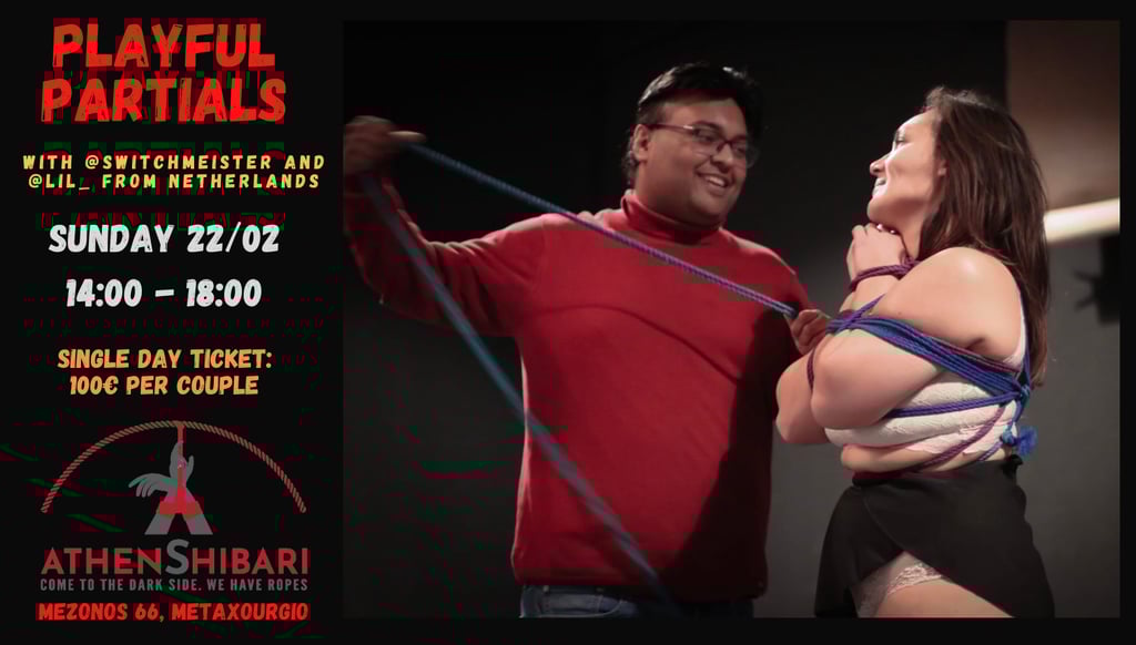 Together, we’ll experiment with ways to use partials to create intensity, build atmosphere, and shift emotional tone. You’ll learn to use partials not only for their physical positions but also as tools for dialogue and emotional expression—from playful teasing to moments of vulnerability and surrender. Also using micro movements and body handling to get to a point where things become more subtle and interesting in your rope scene